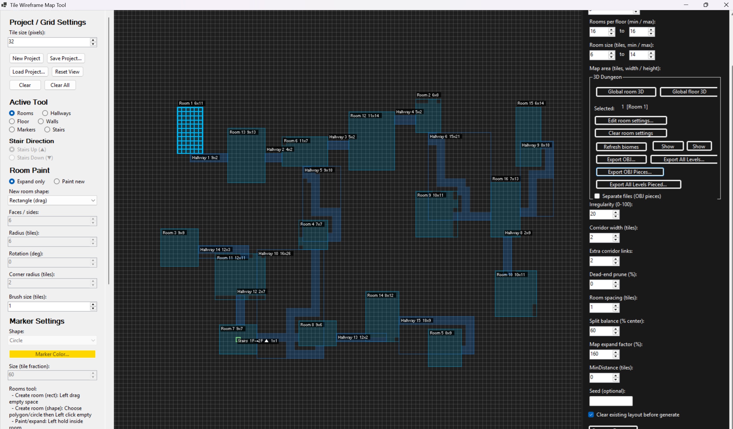 With the new V8 Version you can wireframe out dungeons ,and rooms with textures quickly! The Painter tool is a work in progress ,but as long as you keep object small it should be fine! Would suggest using the large exporter pass for most objects.
